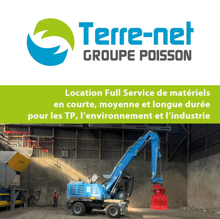 Terre-net Groupe Poisson, fort d’une solide expérience de plus de 50 ans, vous propose la location Full Service de matériels en courte, moyenne ou longue durée pour les activités du déchet (environnement), les travaux publics et l’industrie. Présente sur plus de 150 sites classés en France, la société s’appuie sur une large gamme de matériels et d’équipements pour répondre à l’ensemble de vos besoins, même les plus spécifiques.